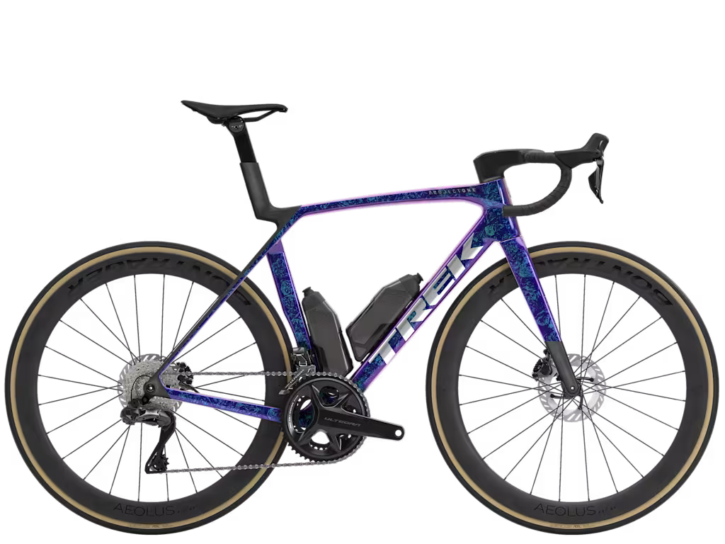 Huippukevyt runko on valmistettu Trekin korkeatasoisimmasta 900-sarjan OCLV-hiilikuidusta, ja siinä on aerodynaaminen putkimuotoilu ja ajomukavuutta edistävä IsoFlow-teknologia sekä RSL Aero -juomapullot ja -telineet, jotka säästävät watteja. 2x12 Shimano Ultegra Di2 -osasarja takaa salamannopean vaihteiden vaihdon ja on täysin mukautettavissa. Yleismallinen takavaihtajan korvake (UDH) varmistaa, että löydät varaosan mistä tahansa. Kaiken kruunaavat Bontrager Aeolus Pro 51 tubeless -hiilikuitukiekot ja yksiosainen Trek Aero RSL -ohjaustanko/ohjainkannatin.